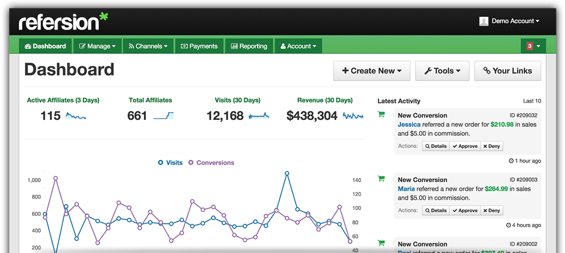 Manage your affiliates and new sales activity right from your account in real-time. Your affiliates will also get their own account access to monitor their performance.